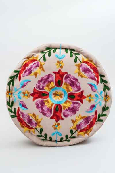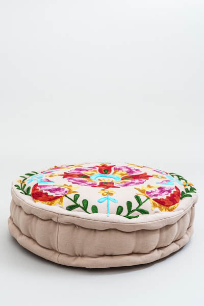 Natürliches Bodenkissen in zeitlosen Erdtönen.
