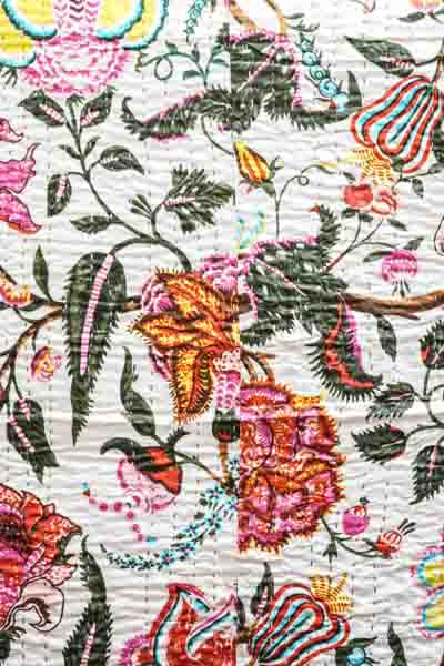 Baumwollkissen mit Vögeln und Blumen – lebendig und dekorativ. Für naturnahe Wohnideen.