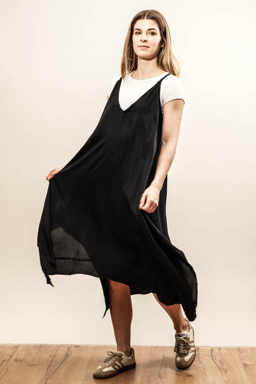 Vollständige Details anzeigenModernes Kleid mit Spaghettiträgern in grau. Schlicht und stilvoll mit angenehmem Tragekomfort. One Size – ideal für minimalistische Looks.