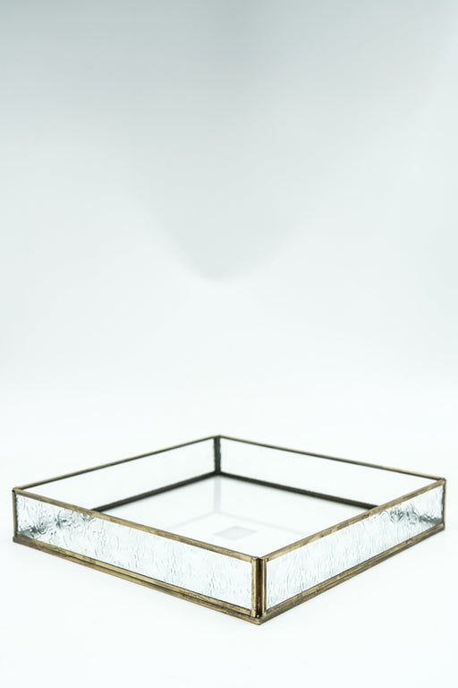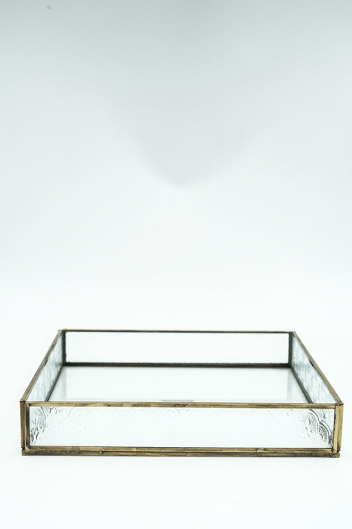 Quadratisches Tablett aus Messing mit Glas – edel & vielseitig: Ideal für Deko Schmuck oder Kerzen.