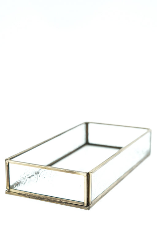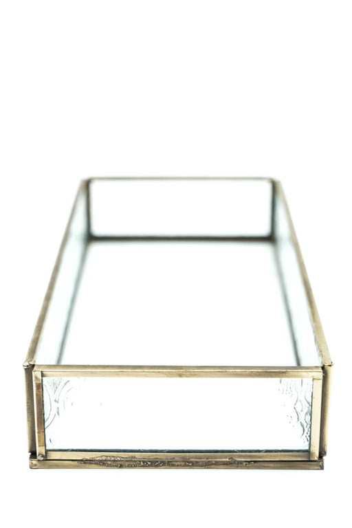 Rechteckiges Tablett aus Messing mit Glas – stilvoll & praktisch: Für Accessoires oder dekorative Zwecke.
