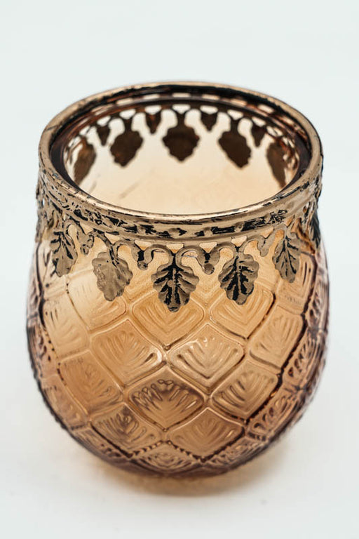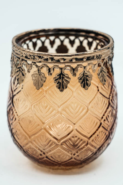 Windlicht aus hellbraunem Glas. Warm und neutral – für natürliche Deko.