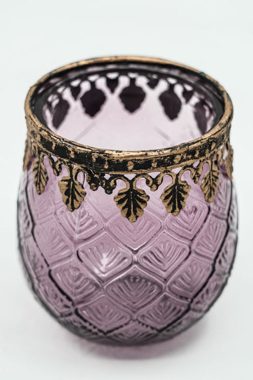 Kleines Windlicht aus lilafarbenem Glas. Ausdrucksstark und dekorativ.