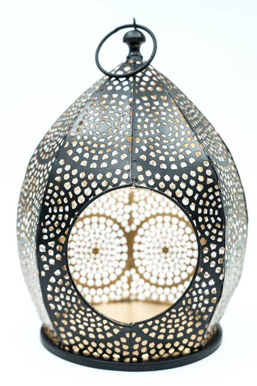 Laterne oval schwarz / goldfarben 18x18x26 cm