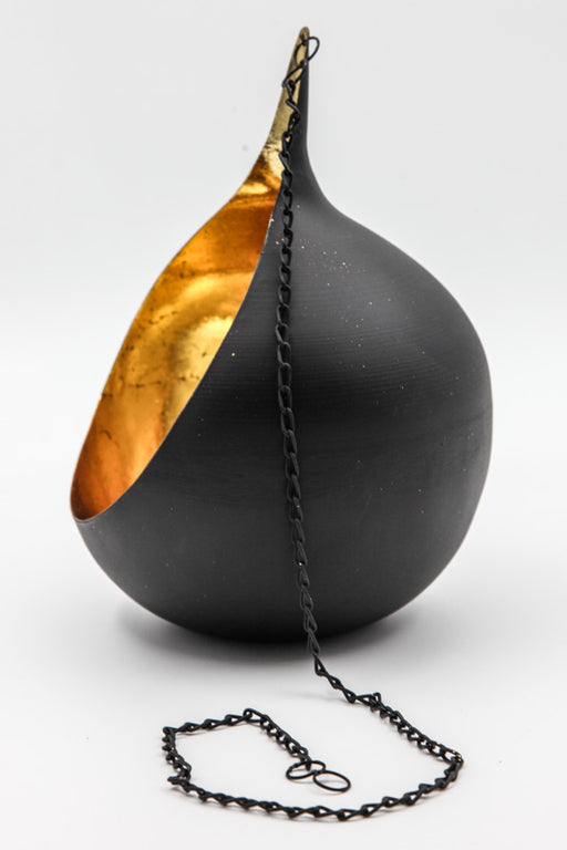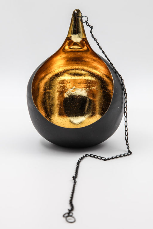 Hängendes Windlicht aus schwarz lackiertem Metall mit Goldfolie