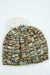 Strickmütze olive/grün/braun mit Bommel - One Size
