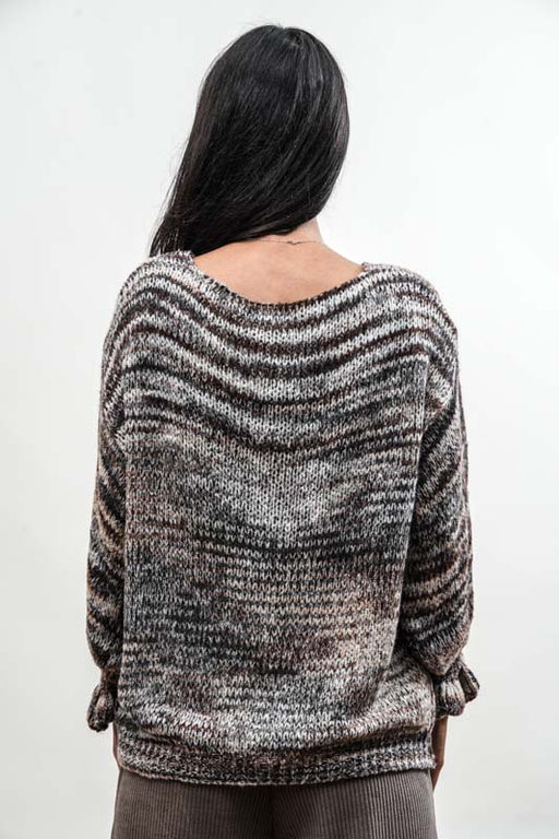 Strickpullover mit braun-grau-multicolor Streifen. Harmonisch und stilvoll für entspannte Outfits.