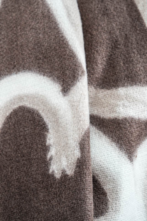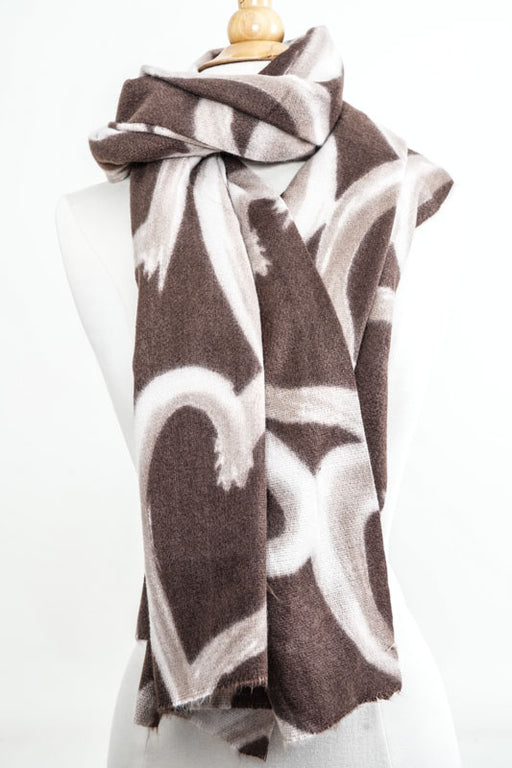 Dunkelbrauner Schal mit Herzmuster aus Kaschmir und Viskose. Masse: 85×190 cm – warm & charmant: Liebevolles Muster in edlem Braunton.