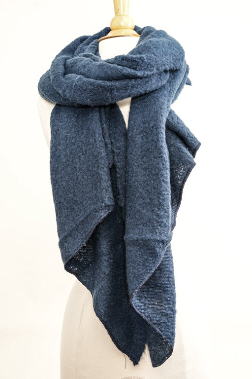 Jeansblauer Schal aus Kaschmir, Viskose und Wolle. Masse: 70×190 cm – lässig & weich: Moderne Farbe trifft edle Fasern.