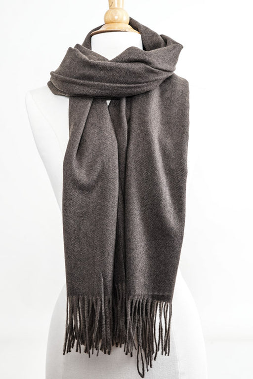 Dunkelbrauner Schal aus Kaschmir, Viskose und Wolle. Masse: 70×190 cm – warm & klassisch: Eleganter Begleiter für kühle Tage.