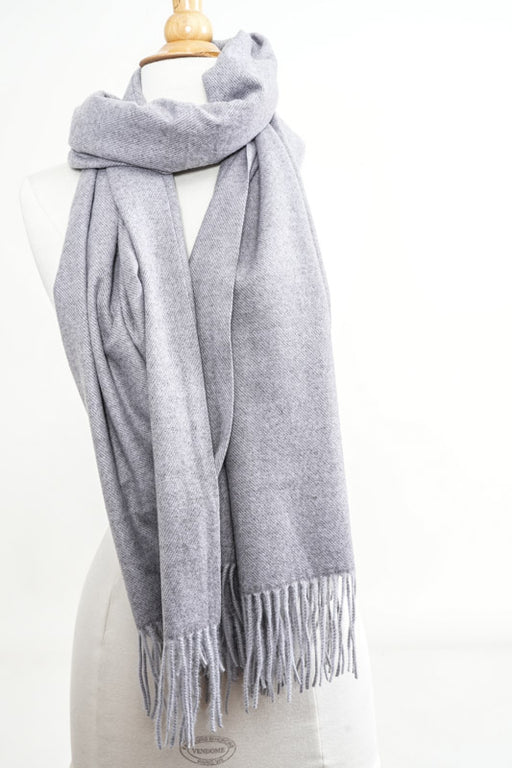 Grauer Schal aus Kaschmir, Viskose und Wolle. Masse: 70×190 cm – schlicht & edel: Neutraler Ton für jeden Stil.