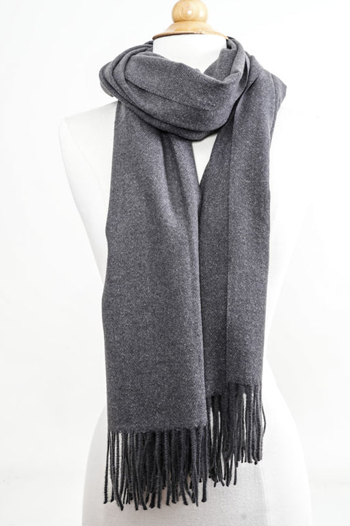 Dunkelgrauer Schal aus Kaschmir, Viskose und Wolle. Masse: 70×190 cm – urban & weich: Stilvoller Begleiter in dunklem Ton.