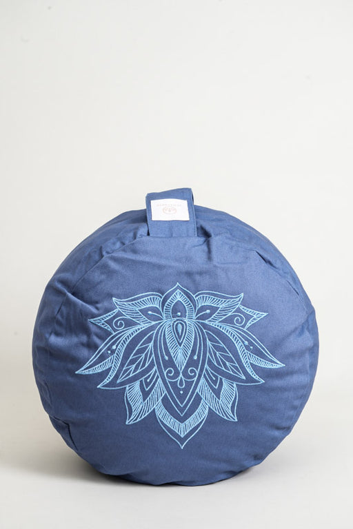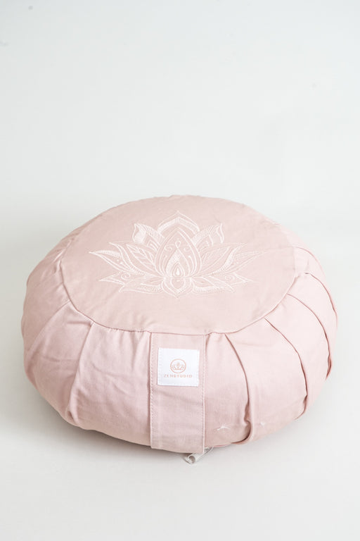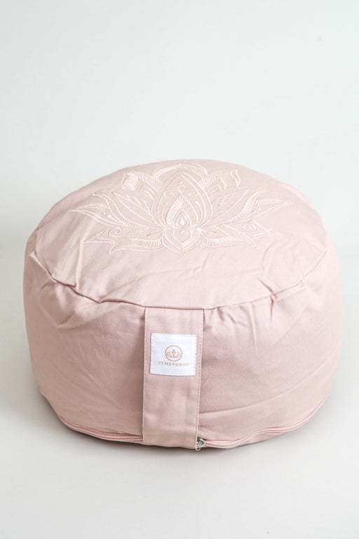 Beiges Meditationskissen mit Lotusblume – rund und inspirierend. Für spirituelle Praxis und Komfort. // Der Bezug der Kissen mit der praktischen Tr...