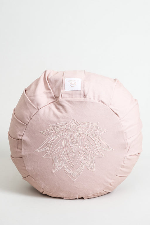 Altrosafarbenes Meditationskissen mit Lotusblume – weich und stilvoll. Für achtsame Momente mit Stil. // Der Bezug der Kissen mit der praktischen T...