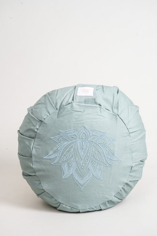 Salbeigrünes Meditationskissen mit Lotusblume – rund und beruhigend. Für meditative Tiefe und Balance. // Der Bezug der Kissen mit der praktischen ...