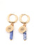 Vergoldete Ohrringe mit blauem Stein und Sonnenmotiv – frisch und strahlend.