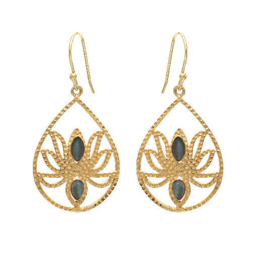 Ohrringe Messing vergoldet Lotusblume Labradorit