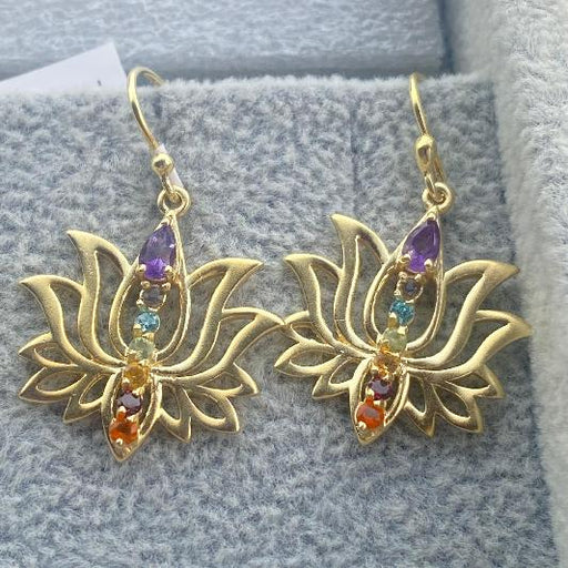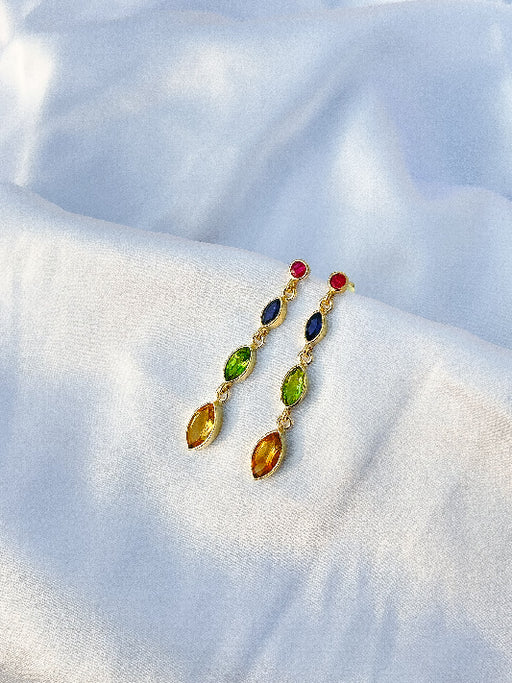 Farbenfrohe vergoldete Ohrringe mit sieben echten Edelsteinen – ein Fest der Vielfalt