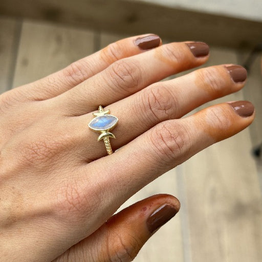 Vollständige Details anzeigenRing Messing vergoldet Regenbogen Mondstein, Iolith