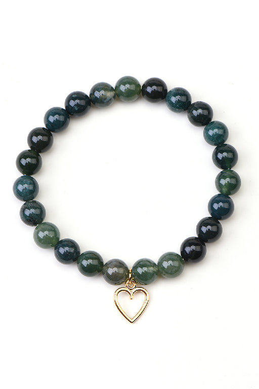 Armband 8mm Moosachat 19cm, mit Anhänger Herz
