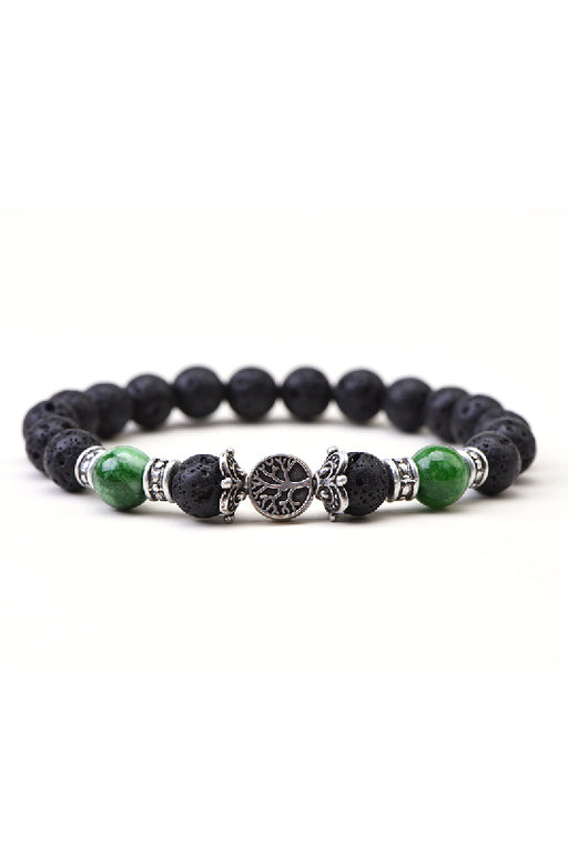 Armband 8mm Lavastein / grüne Jade 19cm, mit Lebensbaum