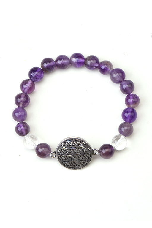 Armband 8mm Amethyst / Kristallquarz 19cm, mit Lebensblume