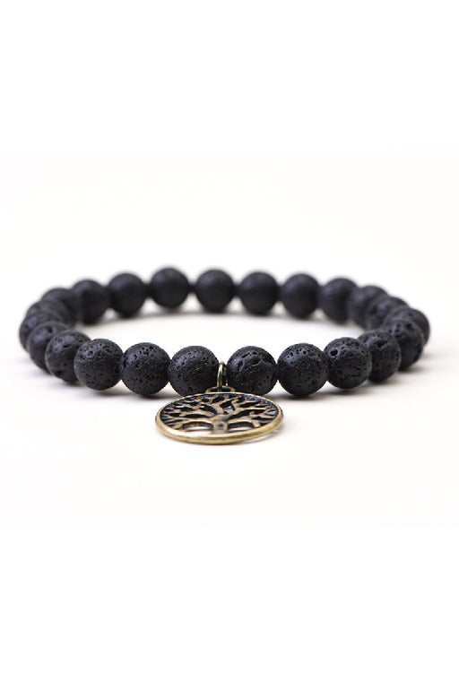 Armband 8mm Lavastein 2-teilig 19cm, mit Anhänger Lebensbaum und Lebesblume