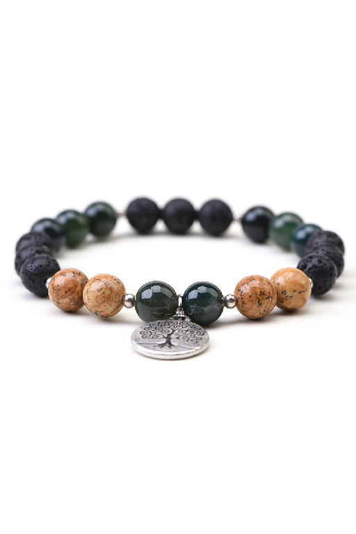 Armband 8mm Lavastein / Moosachat / Picure Jaspis 19cm, mit Anhänger Lebensbaum