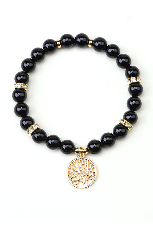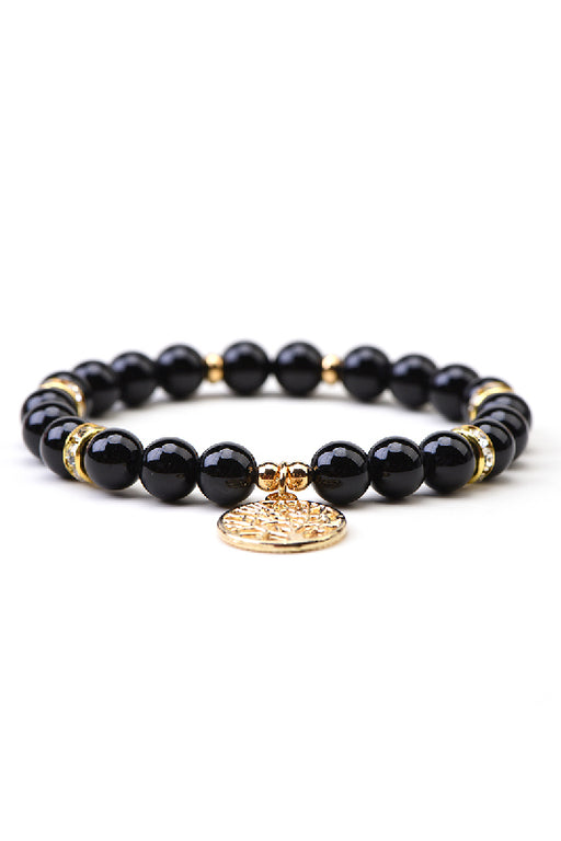 Armband 8mm schwarzer Achat 19cm, mit Anhänger Lebensbaum