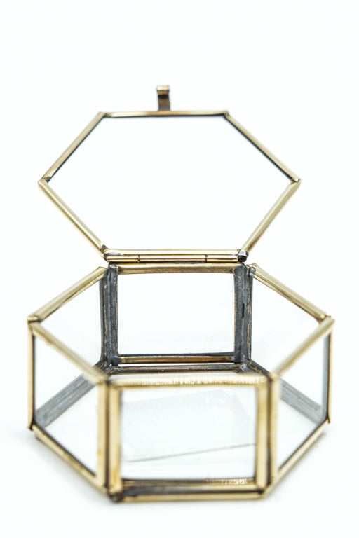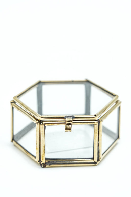 Kleine sechseckige Schmuckschatulle aus Messing mit Glas – stilvoll & praktisch: Für Ringe Ohrringe oder kleine Accessoires.