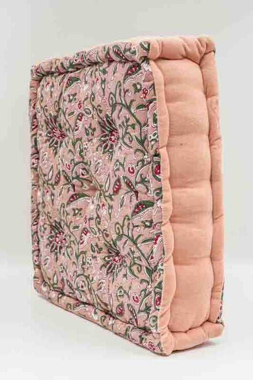Sitzkissen/Bodenkissen Gaddi Baumwoll-Samt mit Print apricot/rosa/rot/grün 40x40x10cm