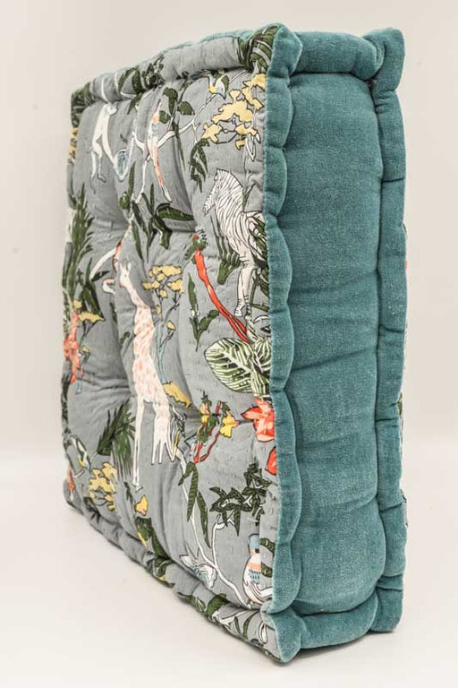 Sitzkissen/Bodenkissen Gaddi Baumwoll-Samt mit Print petrol/gelb/beige/rot 40x40x10cm
