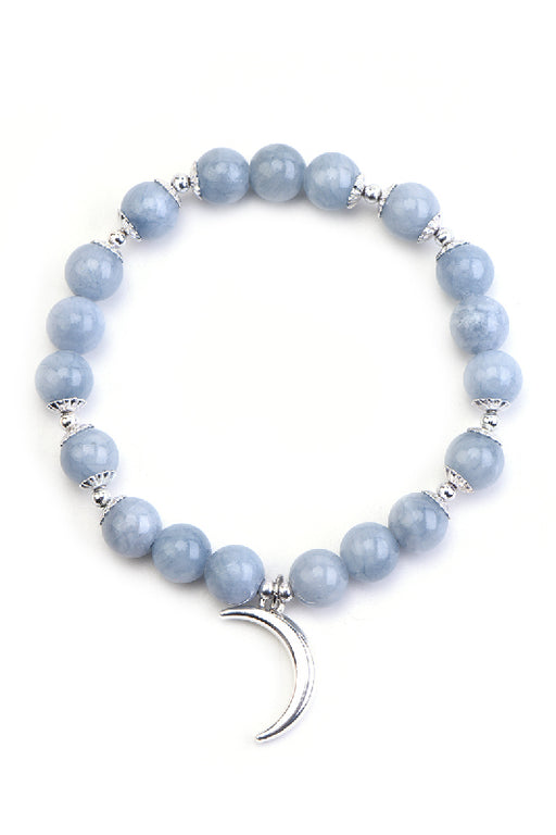 Bracelet 8mm faceted blue jade / sodalite / moonstone 19cm, with lotus flower