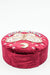 Round jewelry box with butterfly design, dark red/pink/light blue/multicolor, 13.75 cm