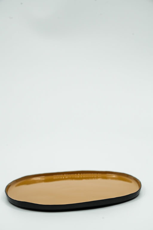Oval tray with black and mustard yellow enamel. For creative table settings.