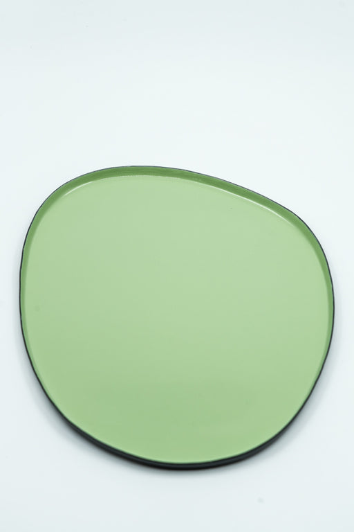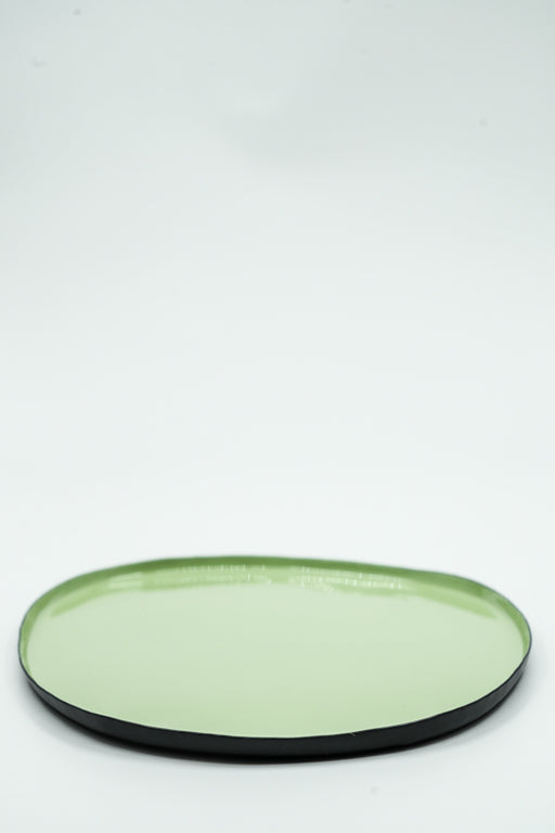 Oval serving tray with black and mint-colored enamel. Fresh and modern.
