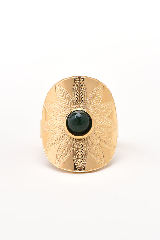 Gold-plated ring with green malachite, adjustable – natural and stylish.
