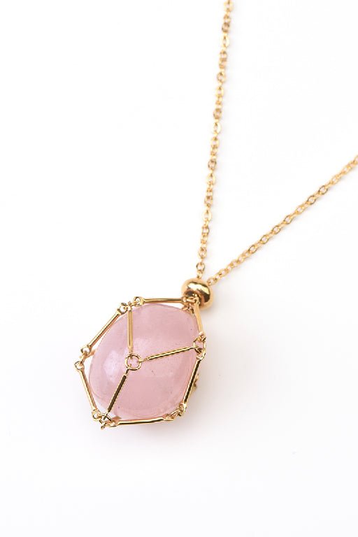 Chain stainless steel gold-plated rose quartz with net 45+5cm