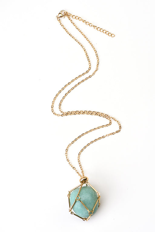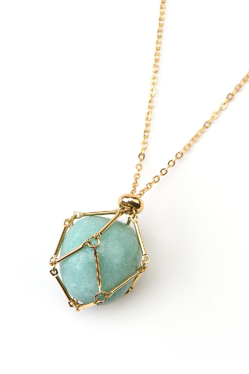 Chain stainless steel gold-plated green aventurine with net 45+5cm