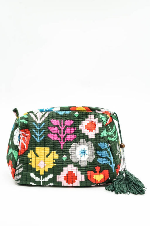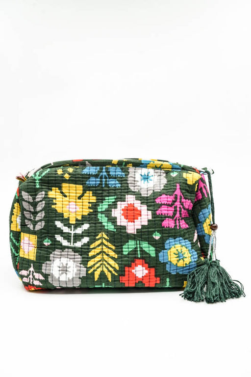 Cosmetic bag 13.75x11.25 cm, dark green, multicolor