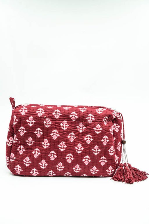 Spacious cosmetic bag for makeup and skincare products.
