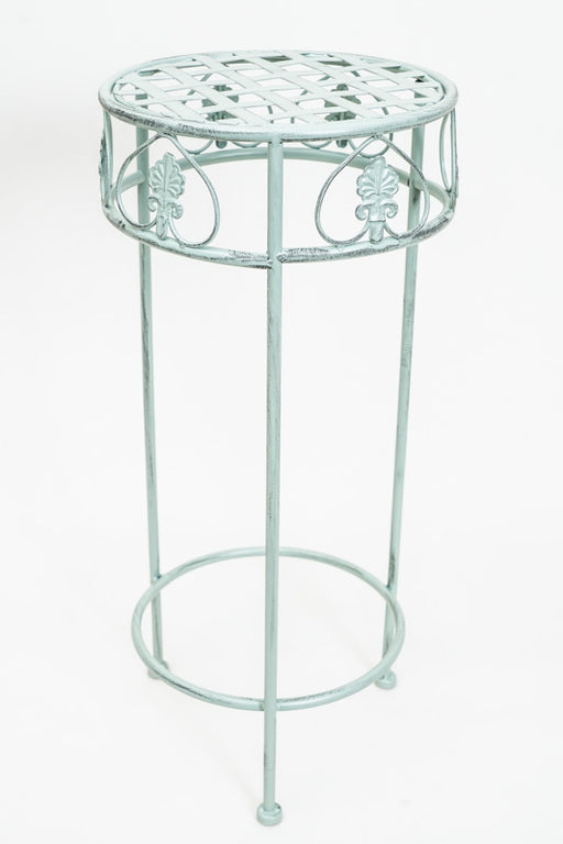 This small, square plant stand in sage green is movable and practical, making it a great addition to your garden or living area. Made of sturdy iro...