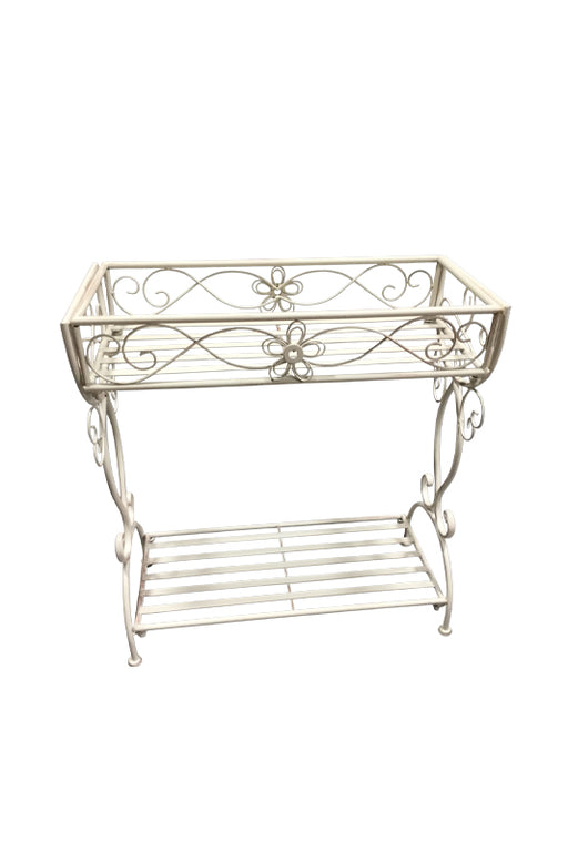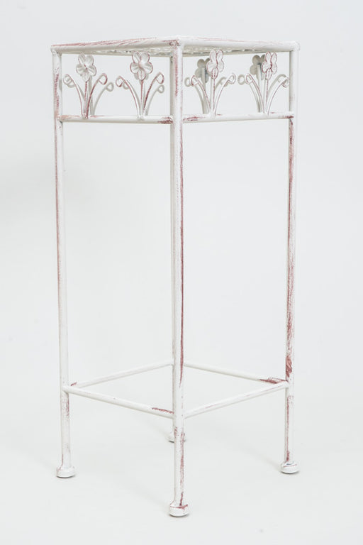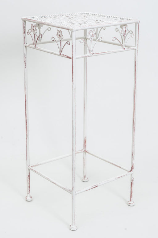 This small, square flower stand in antique cream is movable and practical, making it a great addition to your garden or living area. Made of sturdy...