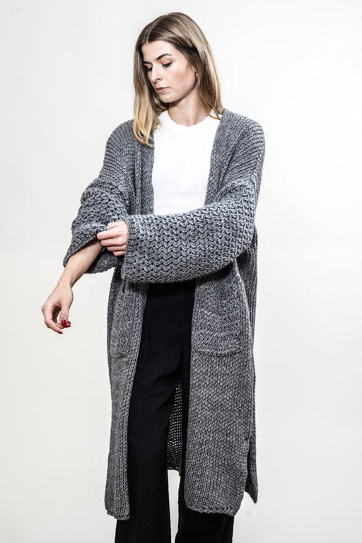 Long knitted coat dark grey - One Size