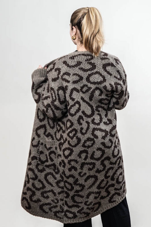 Long knitted coat brown/dark brown patterned - One Size