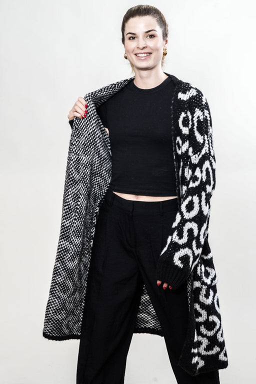 Long knitted coat white/black patterned - One Size