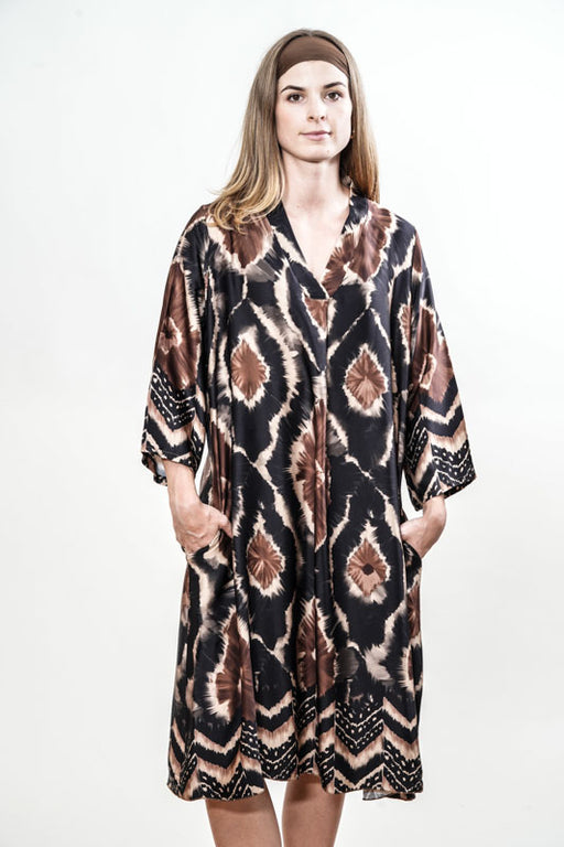 Long black/brown patterned dress - One Size