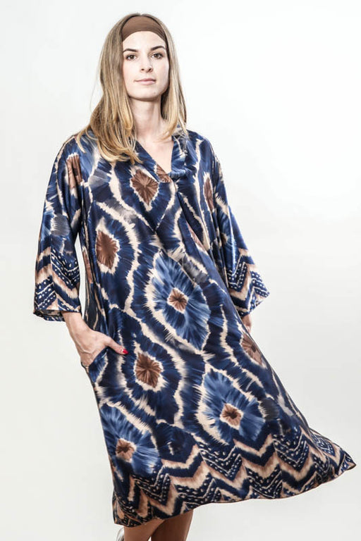 Long blue/beige patterned dress - One Size