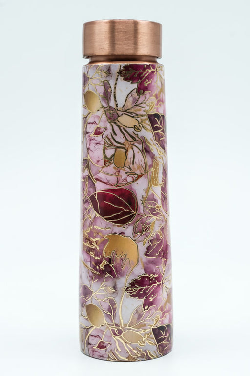 Copper bottle with a leaf motif in pink and burgundy. For natural freshness – leave the water in the Ayurvedic copper bottle overnight and drink it...