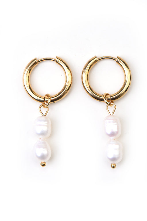 Elegant earrings with two freshwater pearls in gold-plated stainless steel – double the beauty